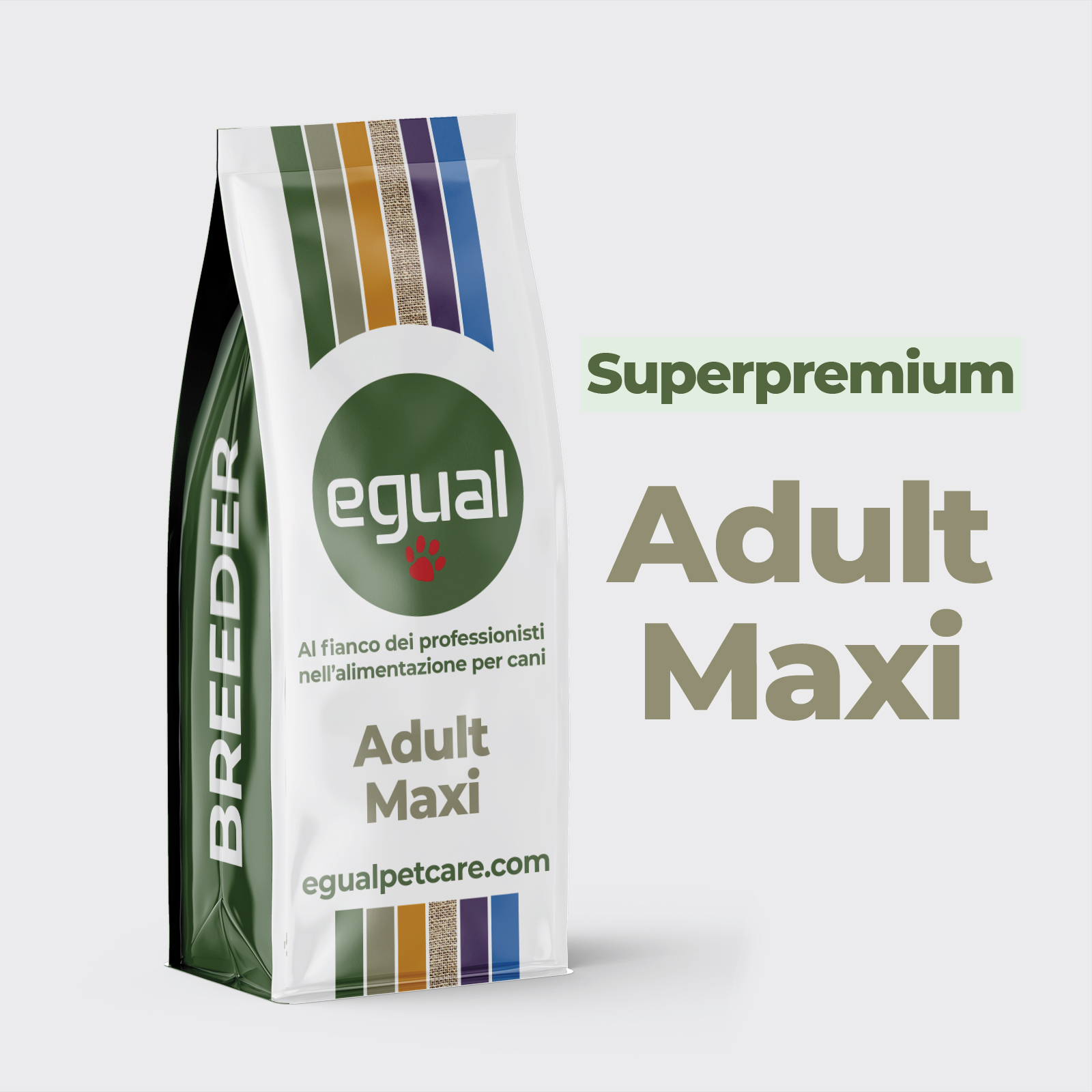 EGUAL Adult Maxi - Alimento completo per cani adulti di taglia grande. Ricco di pollo (28%), Omega 3 e 6, vitamine e minerali per supportare la vitalit e il benessere quotidiano. Energia bilanciata per una vita attiva.